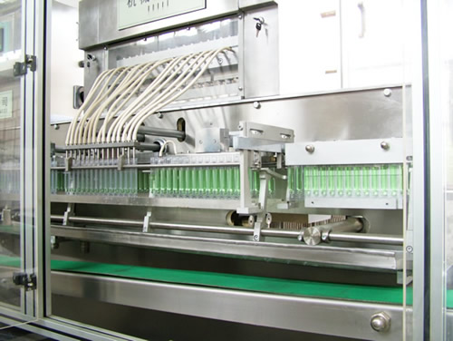 放倦、安瓶成型、灌裝、封尾、打批號、切尾、分切等22個工位由程序控制,連續(xù)自動完成。